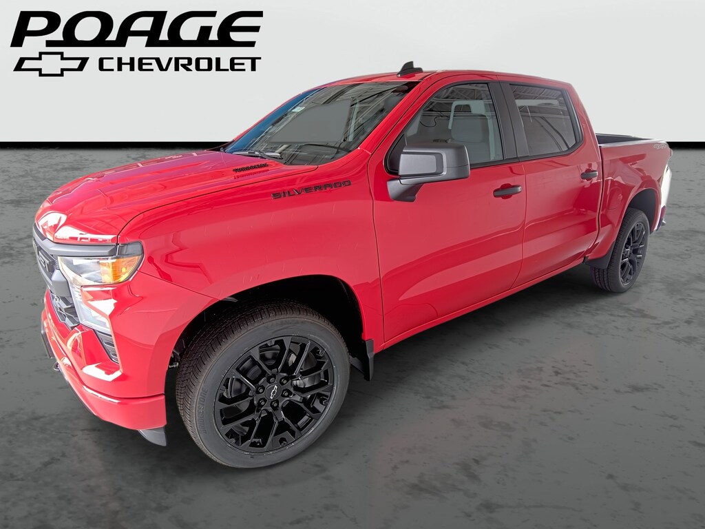 New Price! 2025 4D Crew Cab Red Hot Chevrolet Silverado 1500 Custom 4WD 8-Speed Automatic 2025 Chevrolet Silverado 1500 Custom 2.7L I4 Turbocharged DOHC 16V LEV3-SULEV30 310hp 8-Speed Automatic, 4WD, Black Cloth. Price includes: $1000 - Chevrolet Select Market Bonus Cash. Exp. 11/03/2025 $1000 - GM Bonus Cash. Exp. 11/03/2025 $3000 - Chevrolet Consumer Cash Program. Exp. 11/03/2025