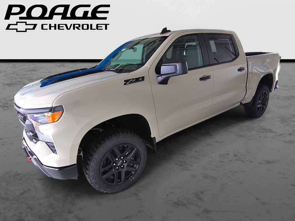 2026 4D Crew Cab White Sands Chevrolet Silverado 1500 Custom Trail Boss 4WD 10-Speed Automatic 2026 Chevrolet Silverado 1500 Custom Trail Boss EcoTec3 5.3L V8 10-Speed Automatic, 4WD, Jet Black Cloth.