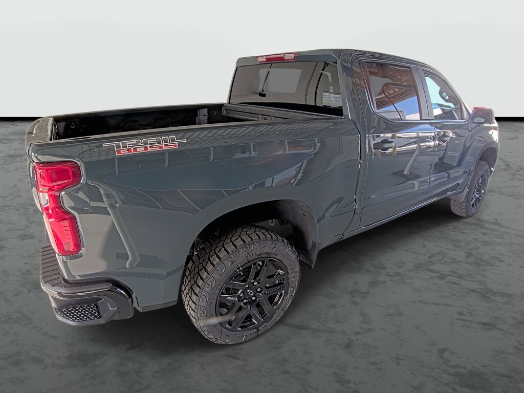 2026 4D Crew Cab Cypress Gray Chevrolet Silverado 1500 Custom Trail Boss 4WD 10-Speed Automatic 2026 Chevrolet Silverado 1500 Custom Trail Boss EcoTec3 5.3L V8 10-Speed Automatic, 4WD, Jet Black Cloth.